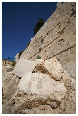 The southern wall of Temple Mount where some of the original stones from the time of Jesus can be found, still lying on the pavement where they had fallen. Matthew 24:1-2 Jesus predicts the destruction of the Second Temple.