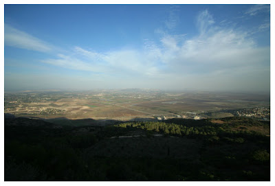 Overlooking the plain of Megiddo or Armageddon – the Jezreel Valley. Somewhere here, Elijah rested and was fed by ravens. 1 Kings 17:1-6 It is here that 'all Isreal' could have gathered to witness the battle between Elijah and the false prophets of Baal. 1 Kings 18:16-46 Perhaps Elijah's servant climbed up here several times and saw a cloud, the size of a hand, rising out of the Mediterranean sea. 1 Kings 18:42-44