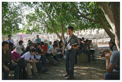 We went with Mt. Carmel School of Ministry, an intensive 2 weeks course that combined teachings and studies together with on site visitations. SOM revealed Israel in ways I feel was very unique and engaging. An excellent way to be introduced to Israel and God's plans. So inspirational are the messages that the sights almost seem secondary. It is quite a revelation to sit in a boat on the Sea of Galilee or gaze upon the plain of Megiddo and hear the teachings of Yeshua through the lips of Peter Tsukahira, David Davis and the other teachers, as well as to see the works and ministries that have been planted in the land through the messianic congregation of Jews at Kehilat HaCarmel.