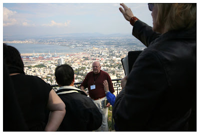Praying the "one new man" over the city of Haifa and over Lebanon (borders in the distance).